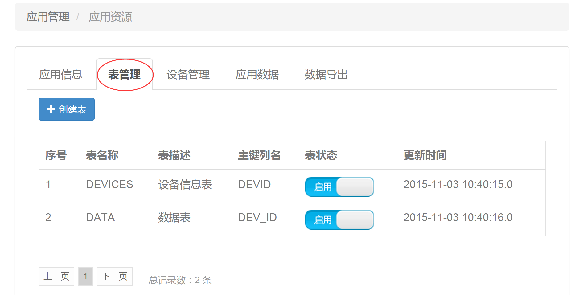 創建表